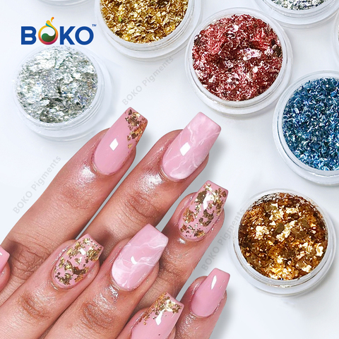 Boko bán buôn siêu sáng bóng Aurora móng tay Opal bột DIY tắc kè hoa AURORA Flake Nail multichrome long lanh bột