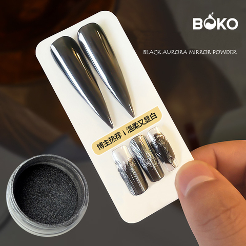 Boko Đen Aurora Gương Bột Bóng Chrome Bột Móng Tay Nghệ Thuật Sắc Tố Chà Bụi Cho Móng Tay Trang Điểm